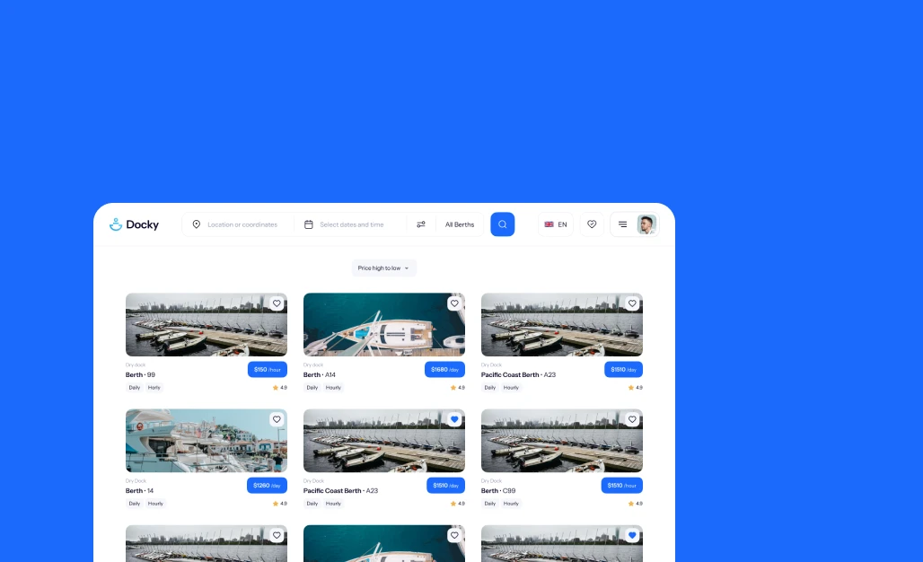 With Docky, you can reach a wide audience of ship owners. Our platform provides information about potential renters, so you can choose who rents your berth.